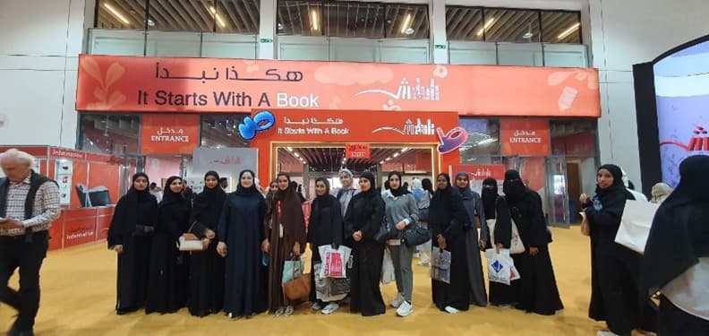 رحلة علمية تثقيفية الى معرض الشارقة الدولي للكتاب و تنسيق لحضور الطالبة شوق الشرفا لتوقيع كتابها ومقابلتها التلفزيونية