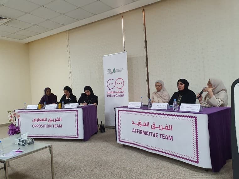 حيث تكون الفريق المؤيد من الطالبات: الطالبة يمنى عمرو السيد من الصحية، والطالبة انجود آل علي من كلية القانون ، والطالبة آمنة الحوسني من كلية الشريعة الدراسات الاسلامية .